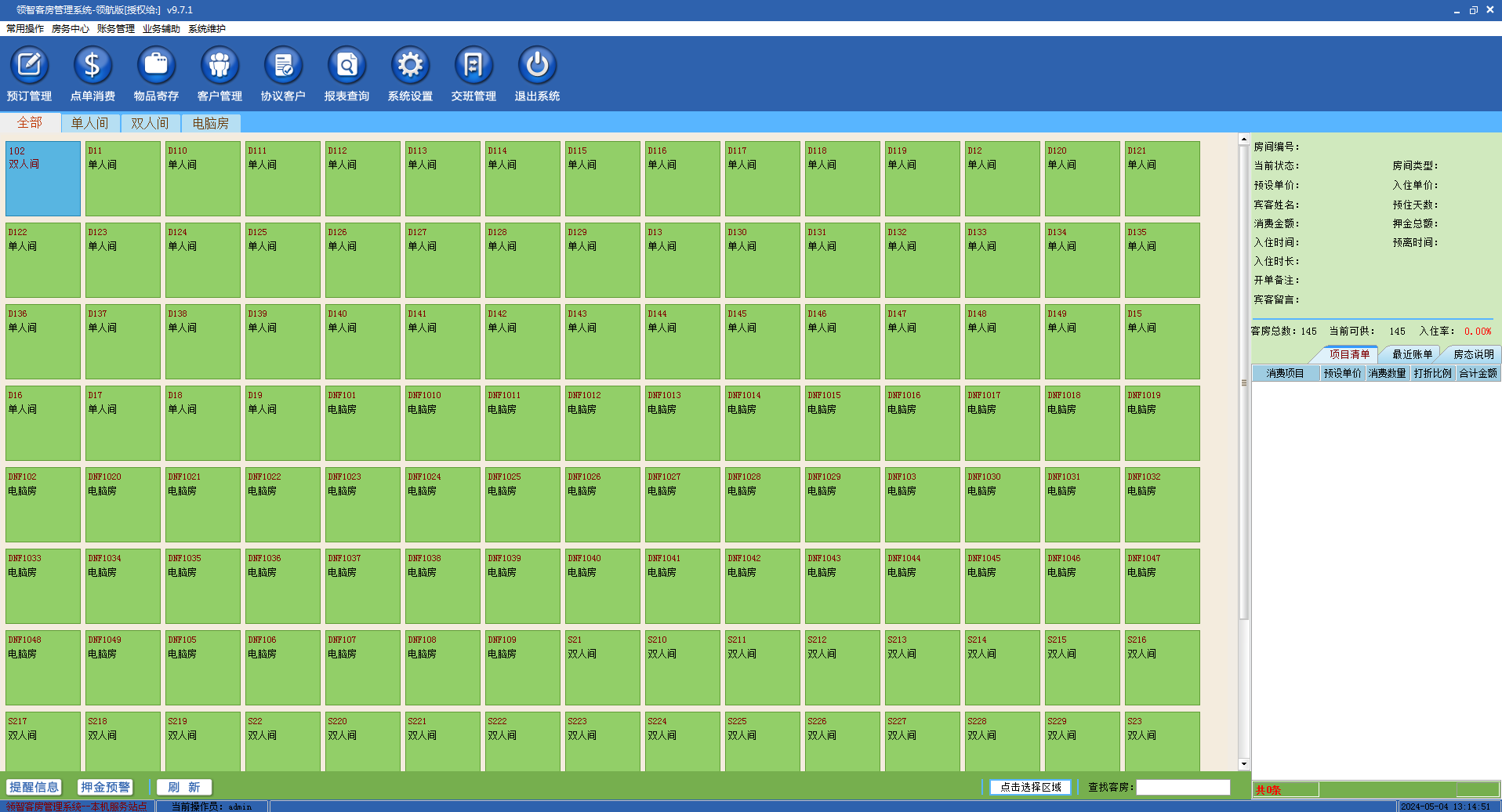 admin 至尊软件 2024-05-04 领智酒店客房管理系统 领智酒店客房管理系统 一个比美萍更好的客房系统,支持网络和单机(win7/win10) sql2000-2008 软件学习驿站让你省钱长本事的网站,588元就可以团淘宝闲鱼上的所有资源。软件学习驿站 » 领智酒店客房管理系统
